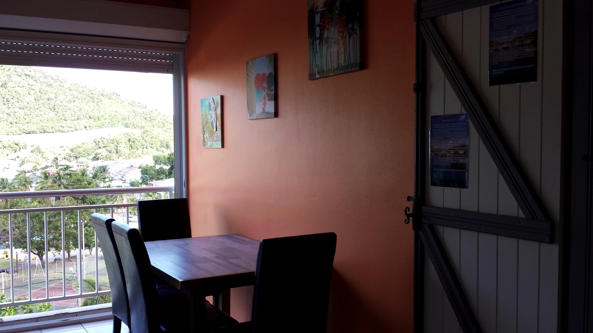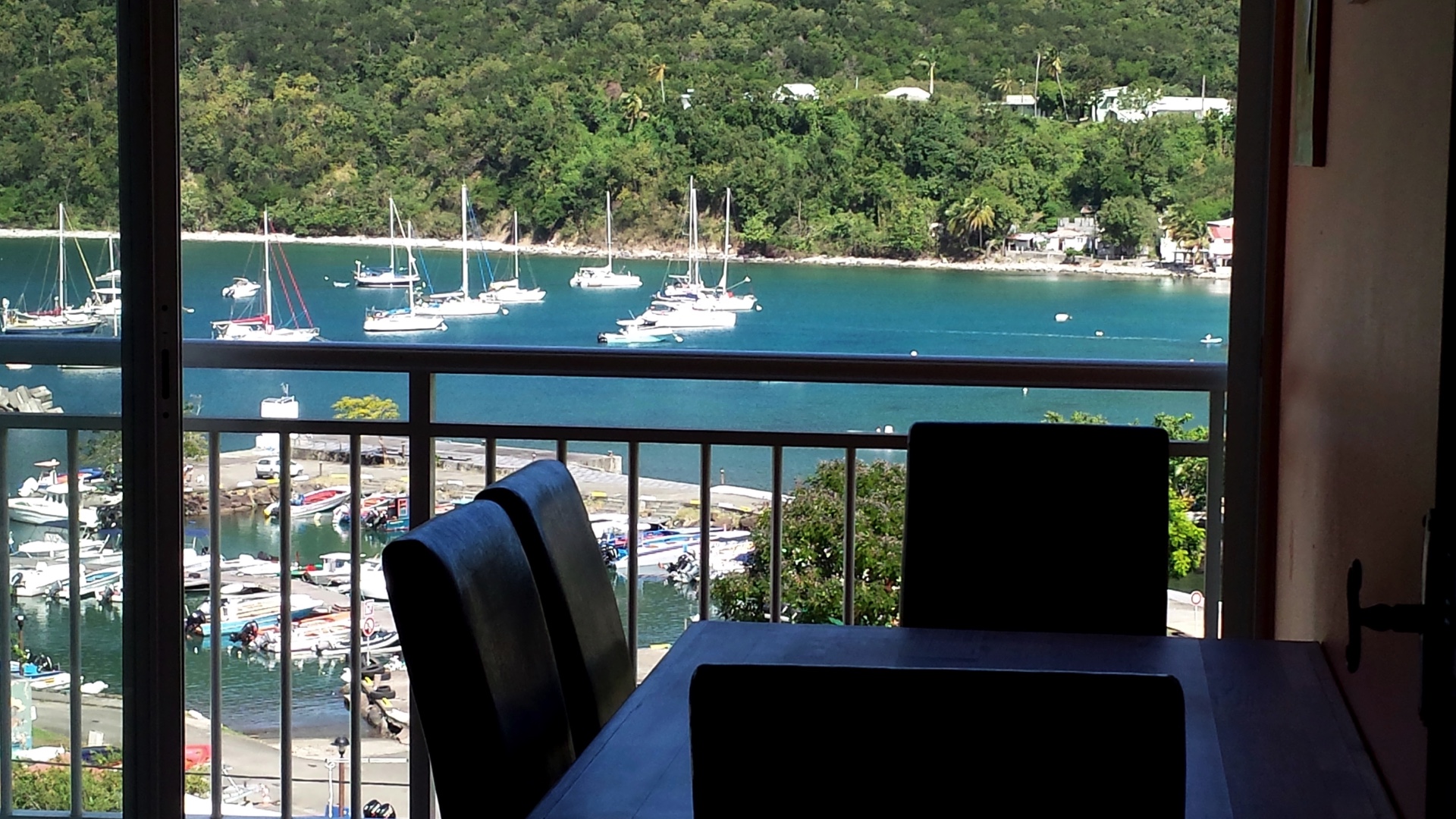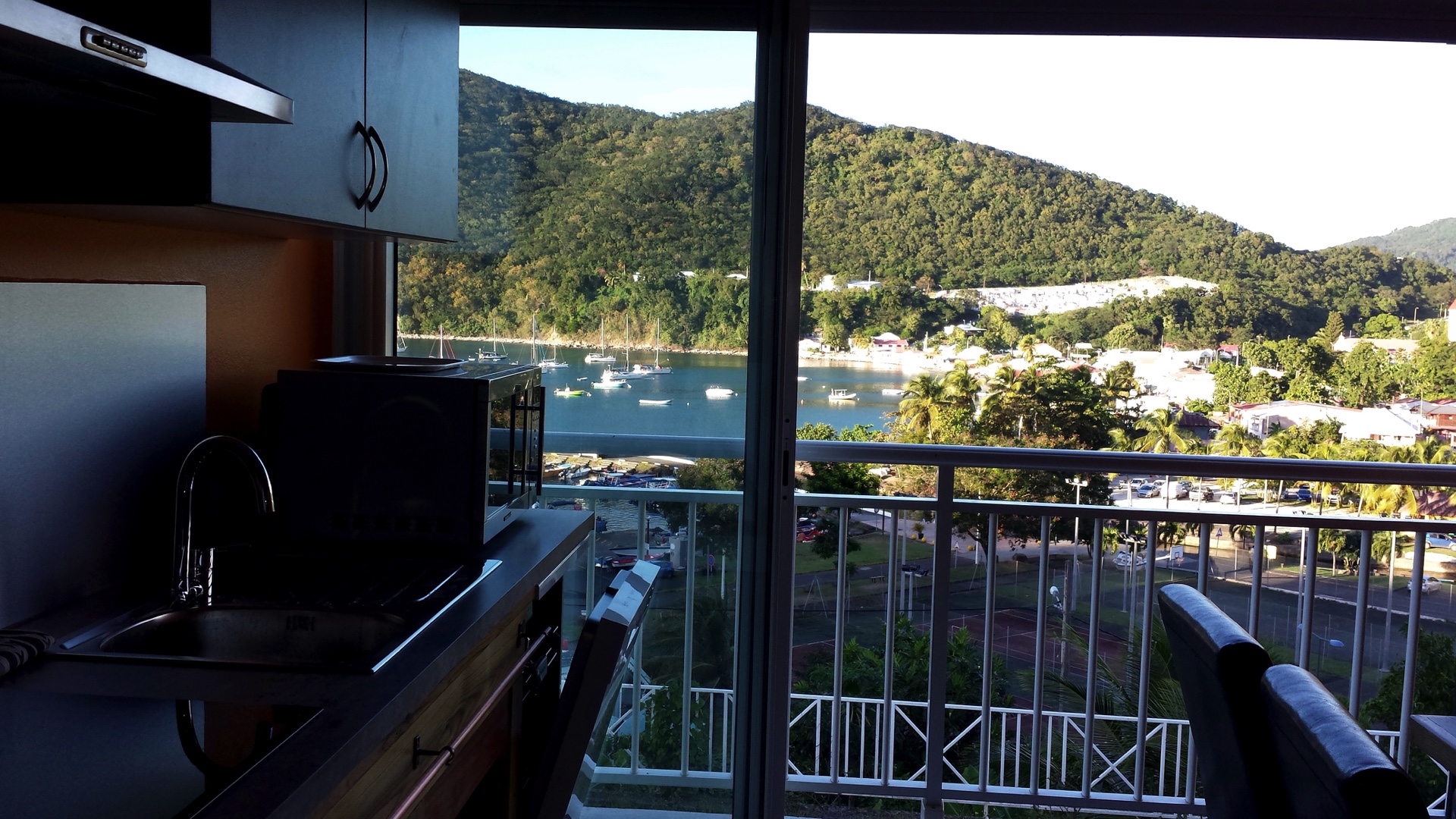 une vue magnifique et changeante sur la baie,le petit port de plaisance et le village de deshaies , à 5 minutes à pieds des commerces et restaurants;c’est ce que vous offre ce charmant duplex .