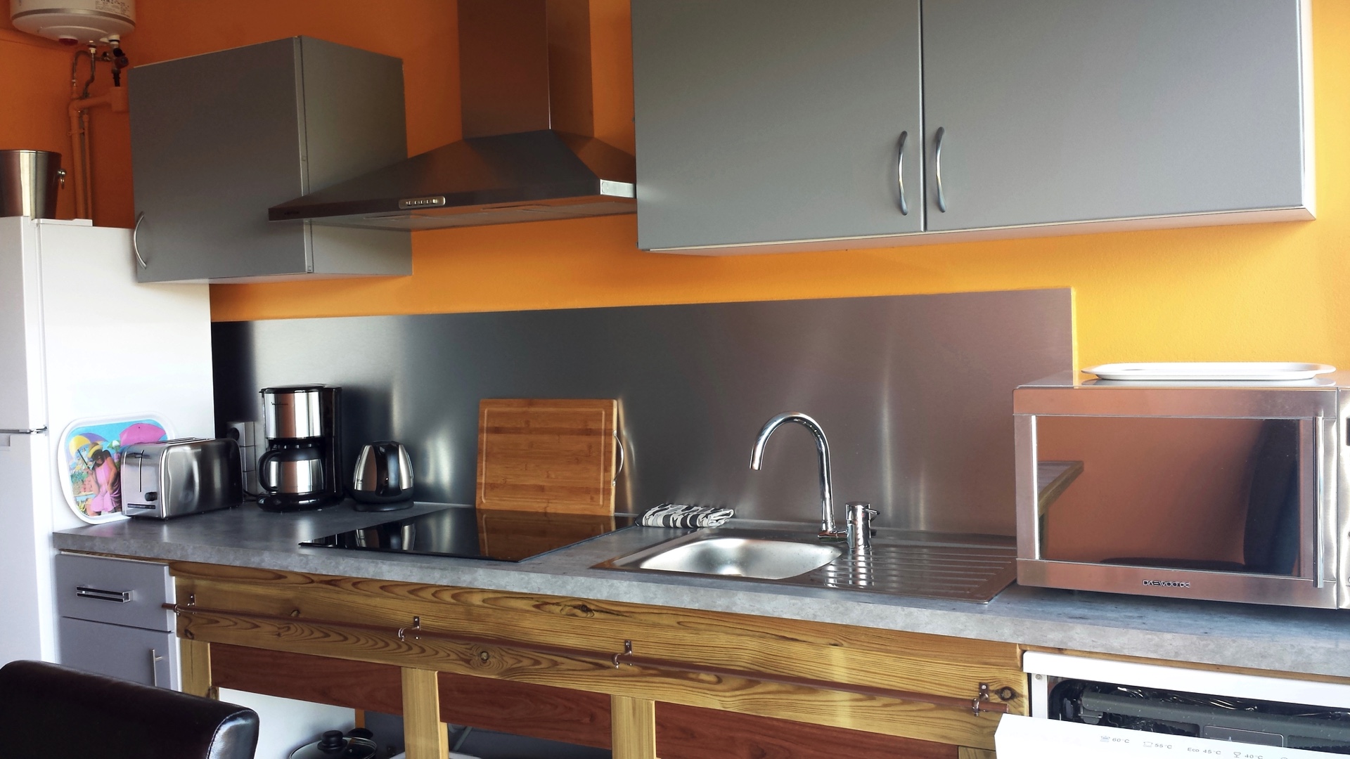 la cuisine est équipée d’un grand frigo-congélateur,d’un four mixte micro-ondes ,de plaques à induction ,d’un lave vaisselle et de tout le nécessaire pour des vacances agréables …
