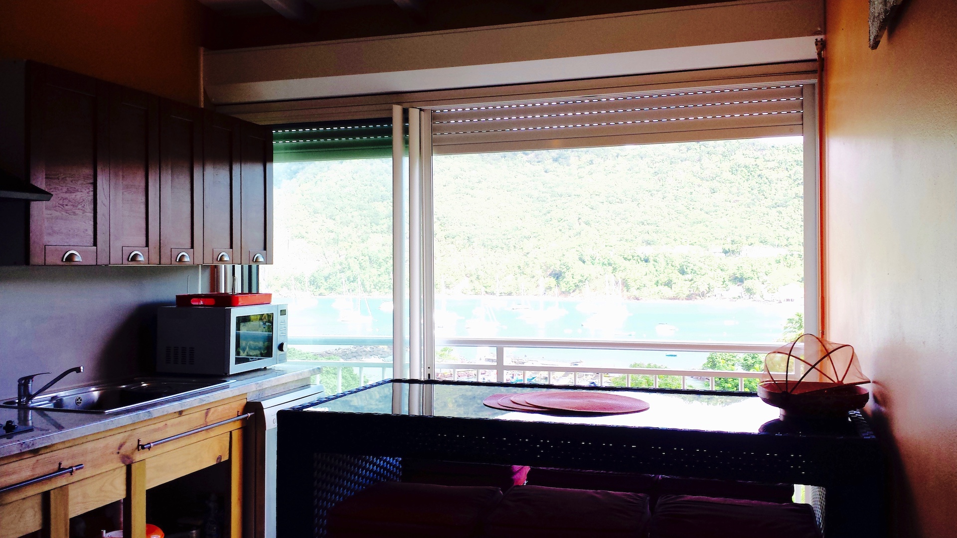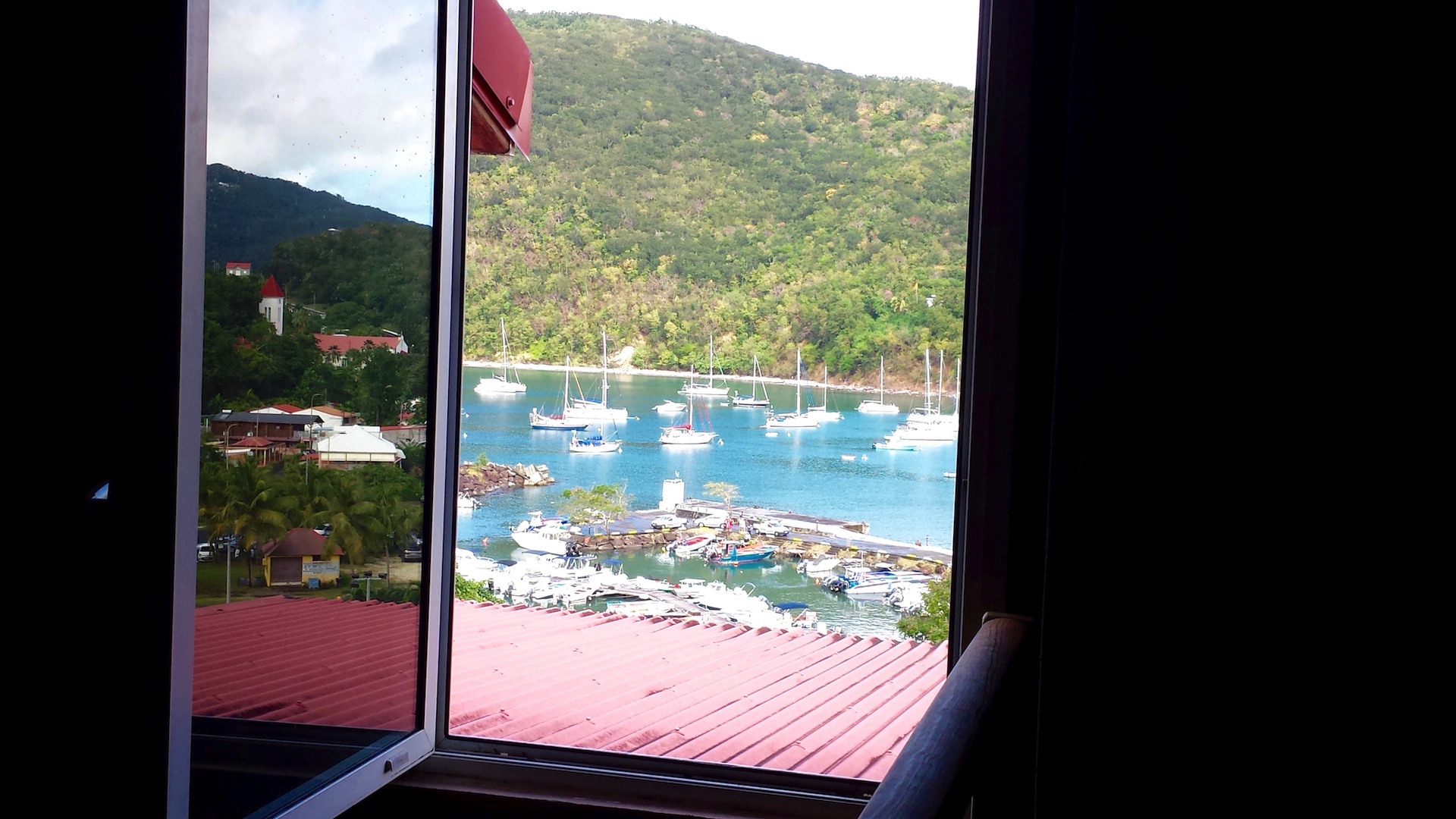 une vue magnifique et changeante sur la baie,le petit port de plaisance et le village de deshaies , à 5 minutes à pieds des commerces et restaurants;c’est ce que vous offre ce charmant duplex .