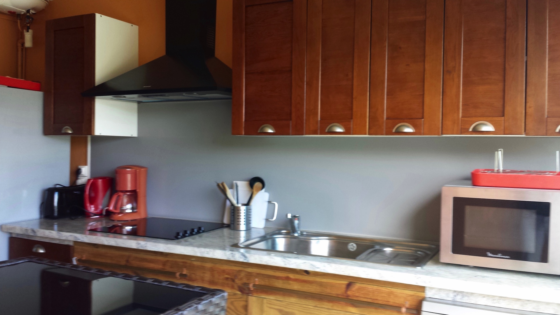 la cuisine est équipée d’un grand frigo-congélateur,d’un four mixte micro-ondes ,de plaques à induction ,d’un lave vaisselle et de tout le nécessaire pour des vacances agréables …